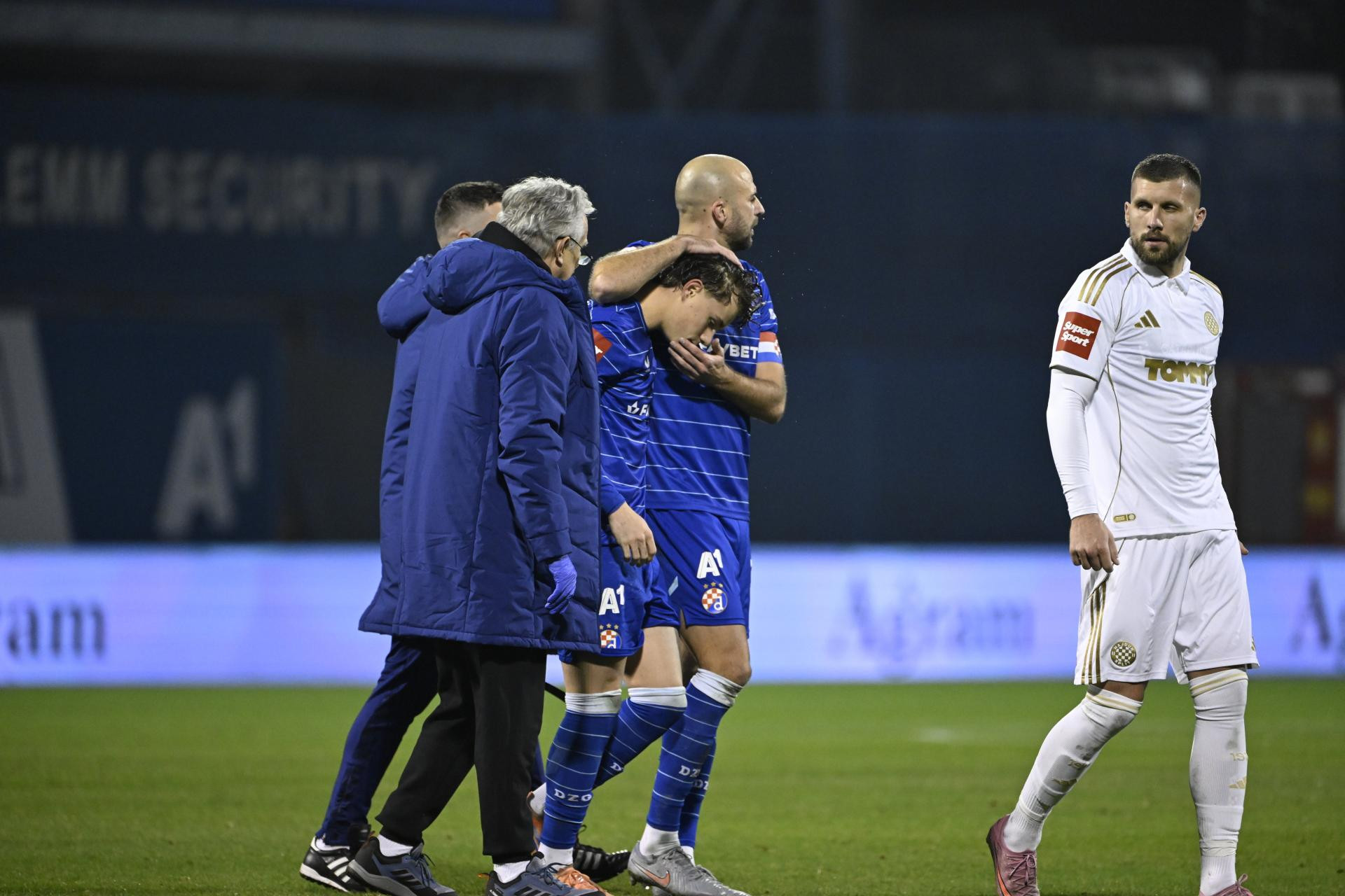 Noa Mikić u zagrljaju s Josipom Mišićem prije izlaska s terena na derbiju zbog ozljede